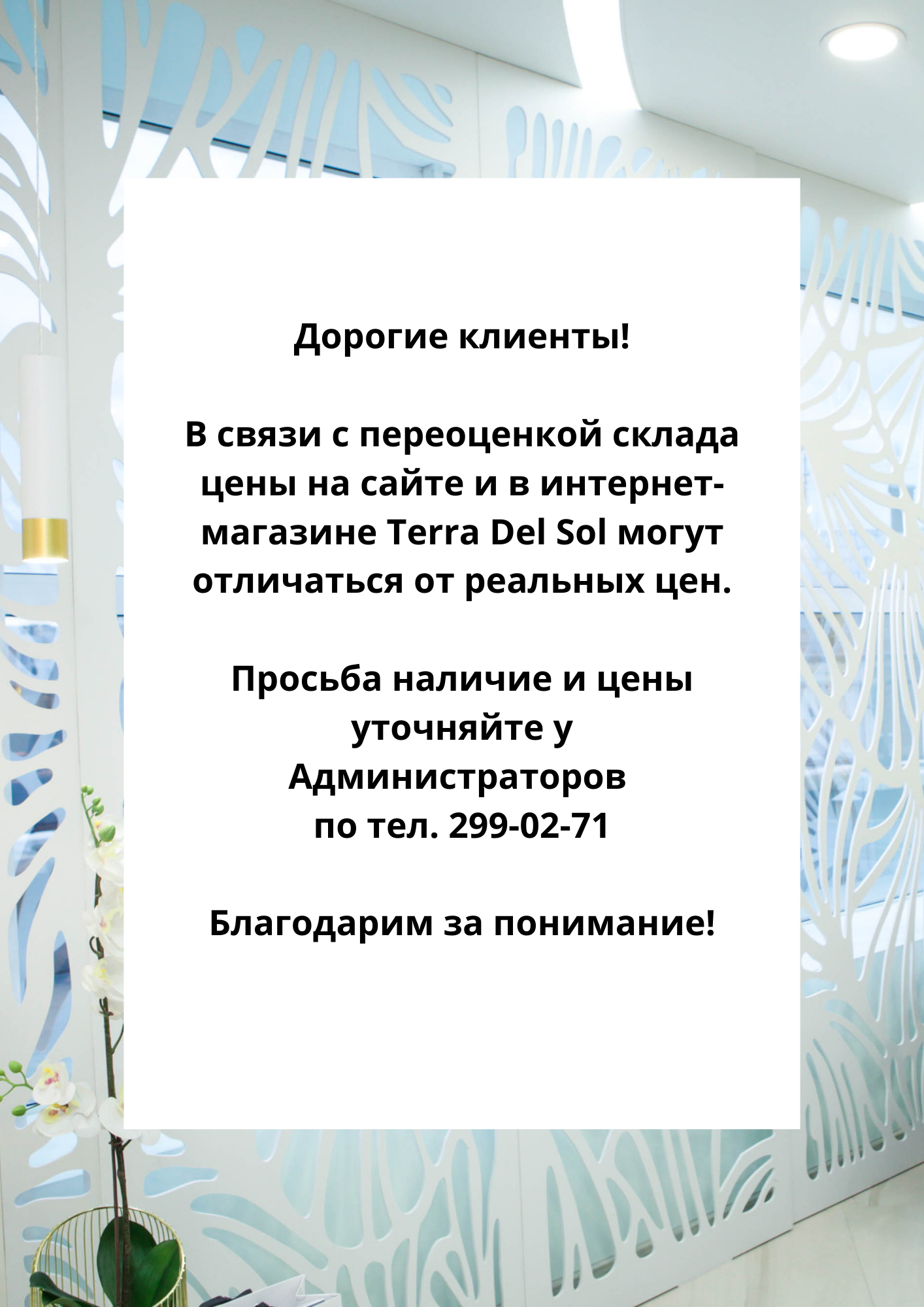 Консультанты нашего интернет-магазина – это опытные косметологи, стилисты, массажисты. В Центре красоты TERRA DEL SOL мы готовы дать подробную консультацию по продуктам и брендам, а также подобрать комплексный уход.